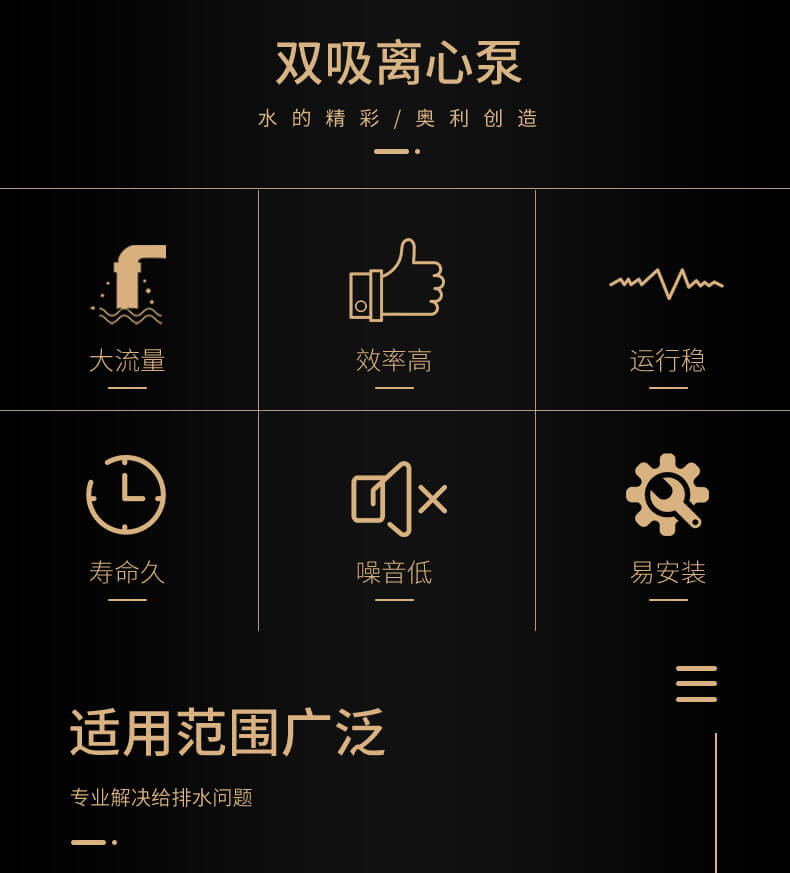 ALNS型雙吸泵為新一代高效節(jié)能單級雙吸中開式離心泵,主要適用于自來水廠、空調(diào)循環(huán)用水、供熱管網(wǎng)系統(tǒng)、建筑供水、灌溉、排水泵站、電廠、工業(yè)供水系統(tǒng)、消防系統(tǒng)、船舶工業(yè)、礦山給排水等輸送液體的場合,是SH、S、SA、SAP型中開雙吸泵的全面換代產(chǎn)品,具有高效節(jié)能、運行穩(wěn)定、外觀優(yōu)美、壽命長久等特點。