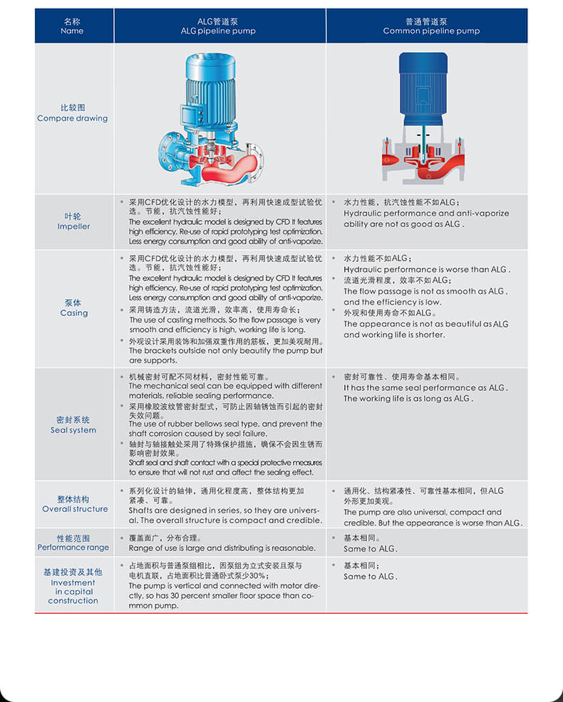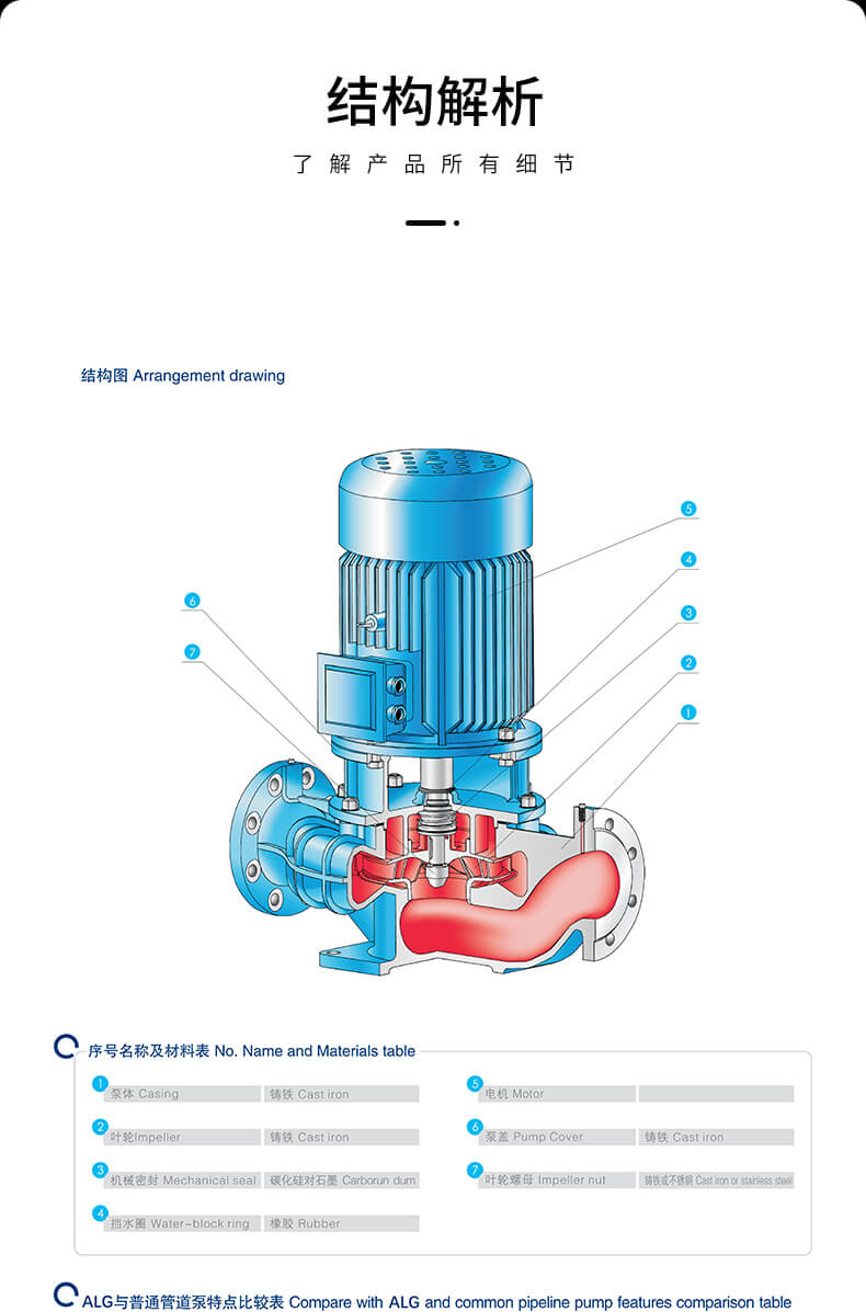 ALG立式管道離心泵,是本單位科技人員聯(lián)合國(guó)內(nèi)水泵專家選用優(yōu)秀水力模型,采用IS型離心泵之性能參數(shù),在一般立式泵的基礎(chǔ)上進(jìn)行巧妙組合設(shè)計(jì)而成。同時(shí)根據(jù)使用溫度、介質(zhì)等不同在ALG型基礎(chǔ)上派出適用熱水、高溫、腐蝕性化工泵、油泵。該系列產(chǎn)品具有高效節(jié)能、噪音低、性能可靠等優(yōu)點(diǎn)。