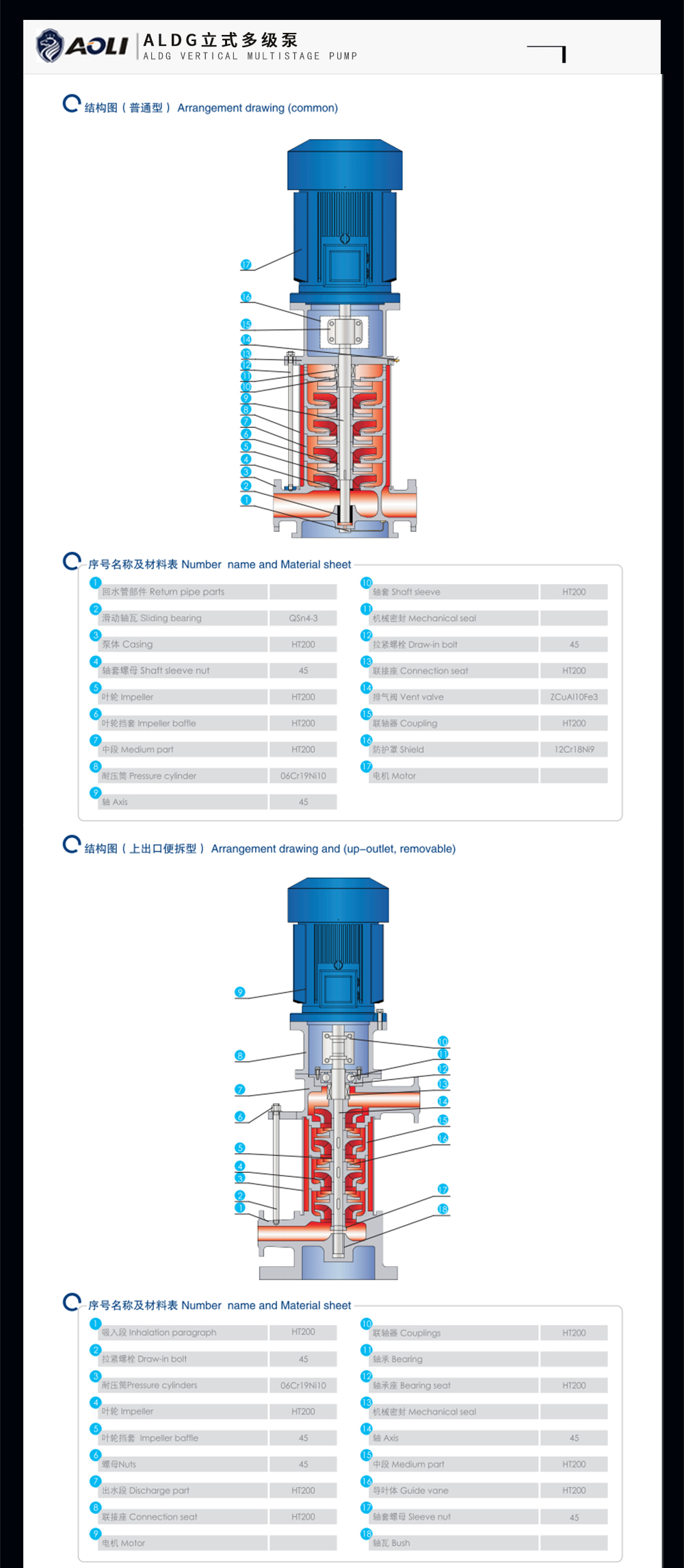 ALDG型立式多級(jí)管道多級(jí)泵是我司在國外優(yōu)秀泵型之基礎(chǔ)上結(jié)合用戶的使用要求及消防有關(guān)標(biāo)準(zhǔn),并根據(jù)JB/TQ6435-92標(biāo)準(zhǔn)設(shè)計(jì)制造的新一代產(chǎn)品。水泵吸入、排出口位于同一直線上。轉(zhuǎn)子部件由軸、葉輪、葉輪擋套、軸套等零件組成,進(jìn)水段、中段、出水段用拉緊螺栓聯(lián)結(jié)。軸封采用機(jī)械密封,用平衡室的壓力水進(jìn)行潤滑和冷卻。是各大行業(yè)冷熱水或物理化學(xué)性質(zhì)類似于水等液體輸送的最佳泵型。