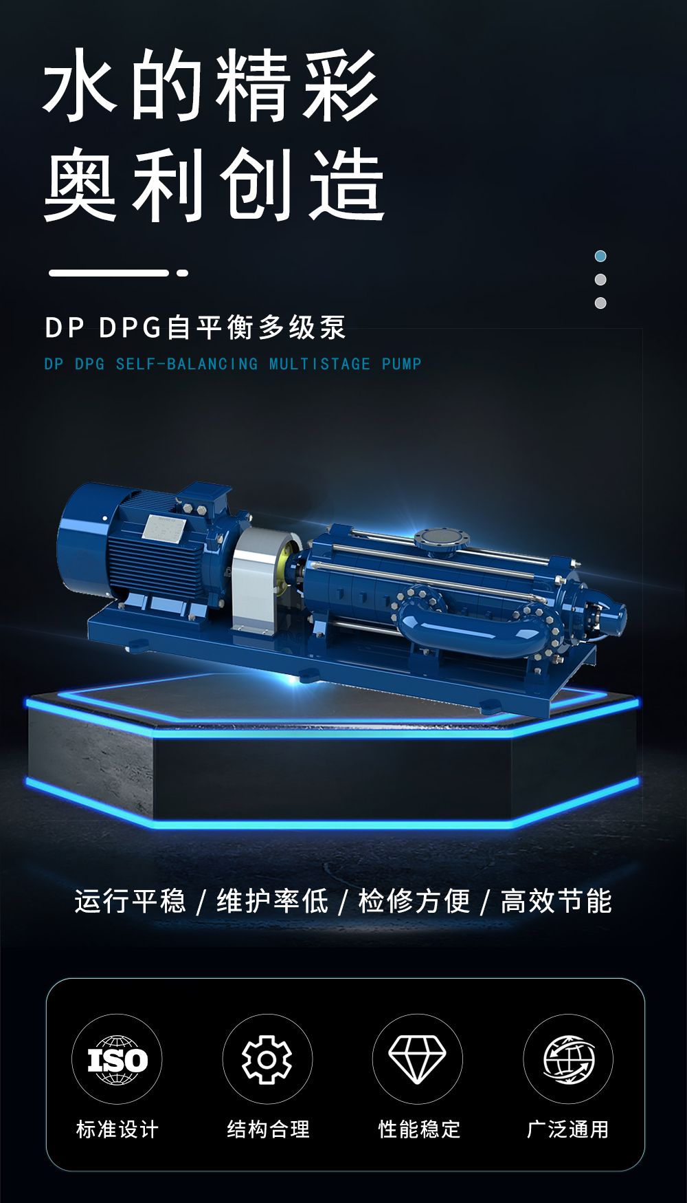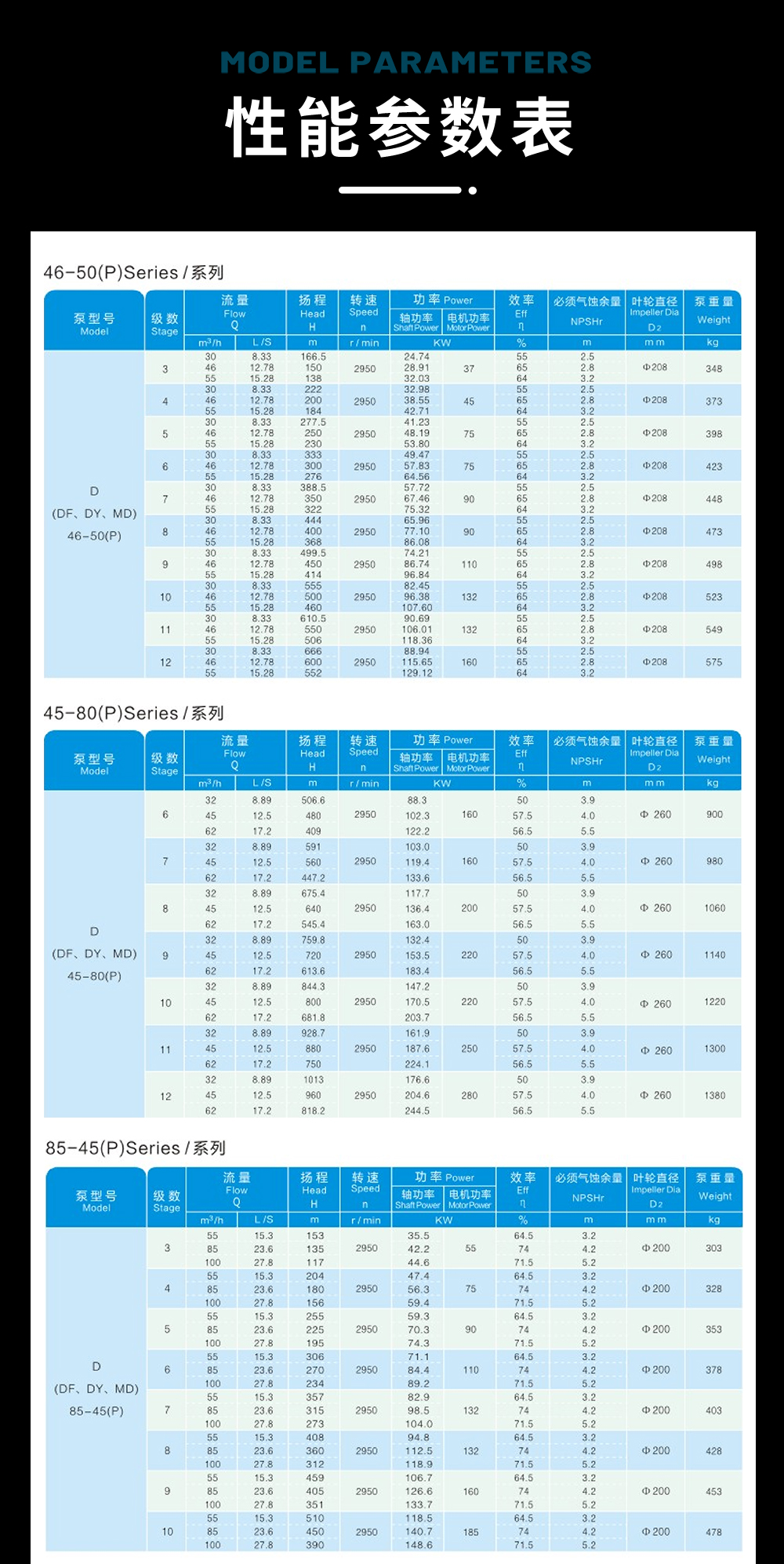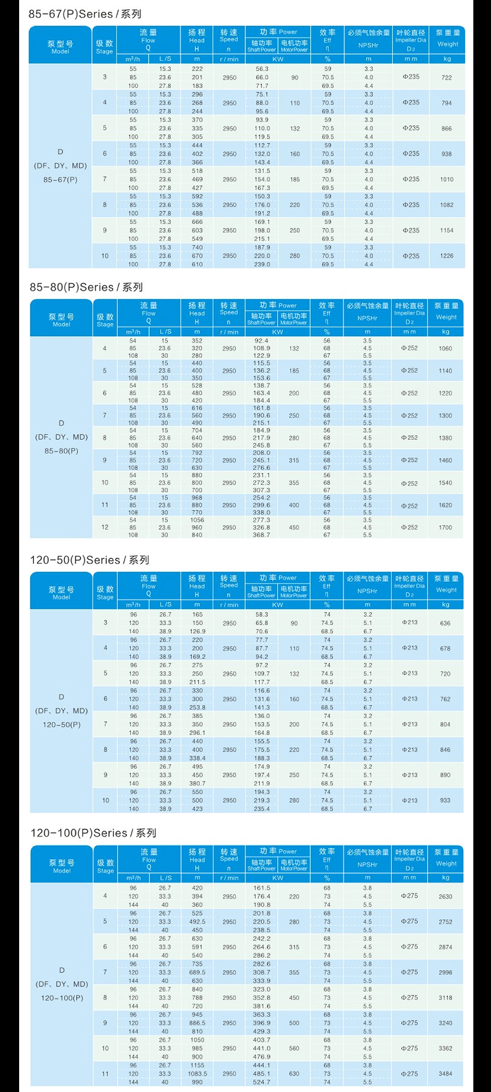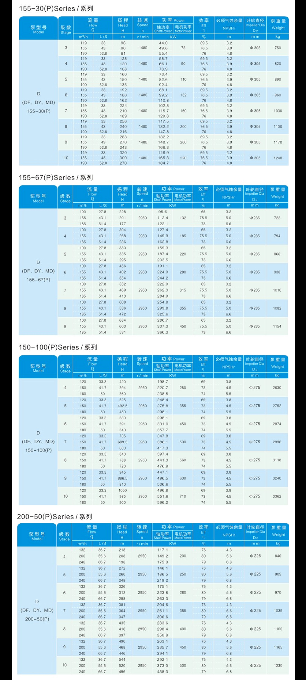 D(P)、DF(P)、DY(P)、MD(P)系列自平衡型離心泵,分為單吸多級機構(gòu)和雙吸多級機構(gòu),是我公司在D型單吸多級離心泵基礎(chǔ)上研制多年,開發(fā)成功的產(chǎn)品。該系列產(chǎn)品高效區(qū)寬、氣蝕性能好、運行平穩(wěn)、易損件少、可靠性大大提高,用戶維護成本大大降低,從而降低泵的壽命周期成本??晒┹斔筒缓腆w顆粒(磨料)、不含懸浮物的清水或物理化學性質(zhì)類似于清水的其它液體之用。也可通過改變泵的材質(zhì)(或泵過流部件的材質(zhì))、密封形式和增加冷卻系統(tǒng)用于輸送熱水、油類、腐蝕性或含磨料的介質(zhì)等。泵允許進口壓力不大于0.6MPa 。