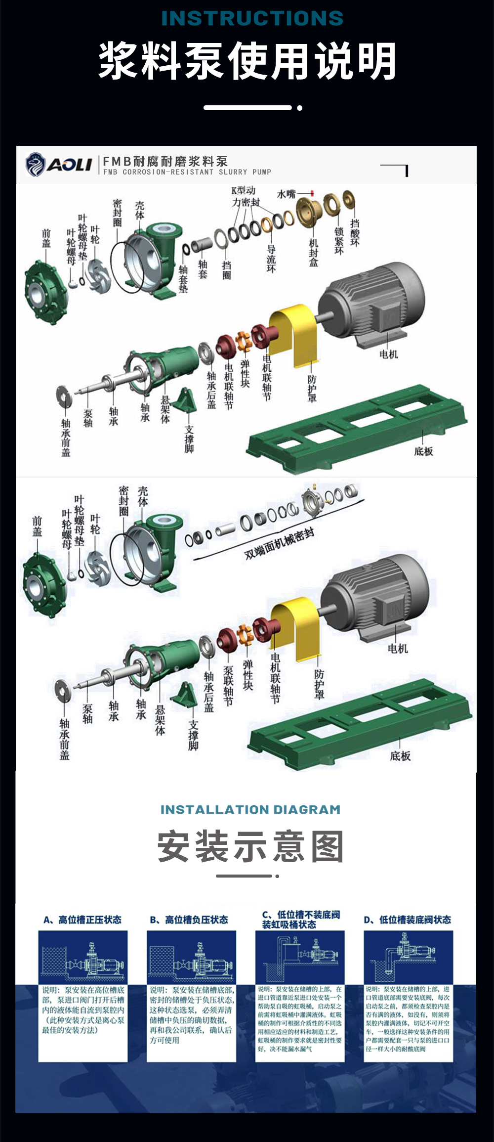FMB耐腐耐磨砂漿泵簡稱“FMB砂漿泵”,過流部件采用鋼襯目前國內新一代耐腐耐磨合金制造。該泵集優(yōu)異的耐磨性、耐沖擊性、耐腐蝕性和耐高溫性等突出的優(yōu)點于一身,設計有K形動力密封(FMB-ZK)、內裝單端面機械密封(FMB-ND)、內裝雙端面機械密封(FMB-NS)三種密封結構,能適應各種工況。特別適合輸送酸、堿性清液或料漿;冶煉行業(yè)各種腐蝕性礦漿;各種有機酸,強氧化劑,環(huán)保行業(yè)各類污水等,應用范圍十分廣泛。