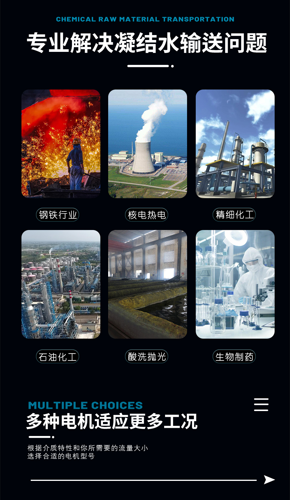 N、NB型凝結(jié)水泵比一般水泵有較好的汽蝕性能之特點(diǎn)。廣泛適用于冶金、發(fā)電廠、精煉廠、石油化工、低溫工程中,汽輪機(jī)冷凝水的抽送及高真空度要求密閉容器的液體抽送。亦可用在介質(zhì)與凝結(jié)水相似的其他地方。