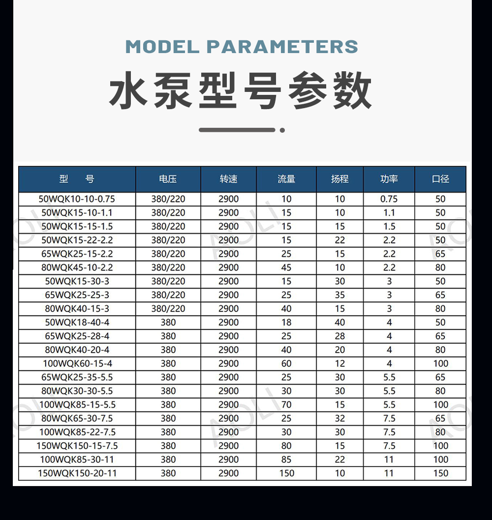 400-889-2268 (24小時)【流量范圍】8-150m3/h 【揚(yáng)程范圍】4-25m 【使用溫度】0℃-40℃ 【配套功率】0.75-7.5KW