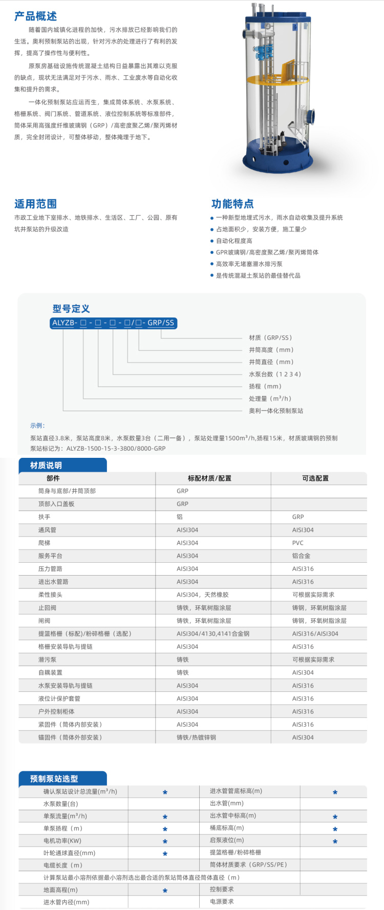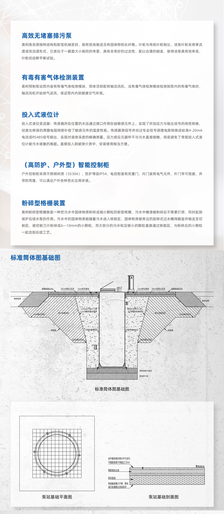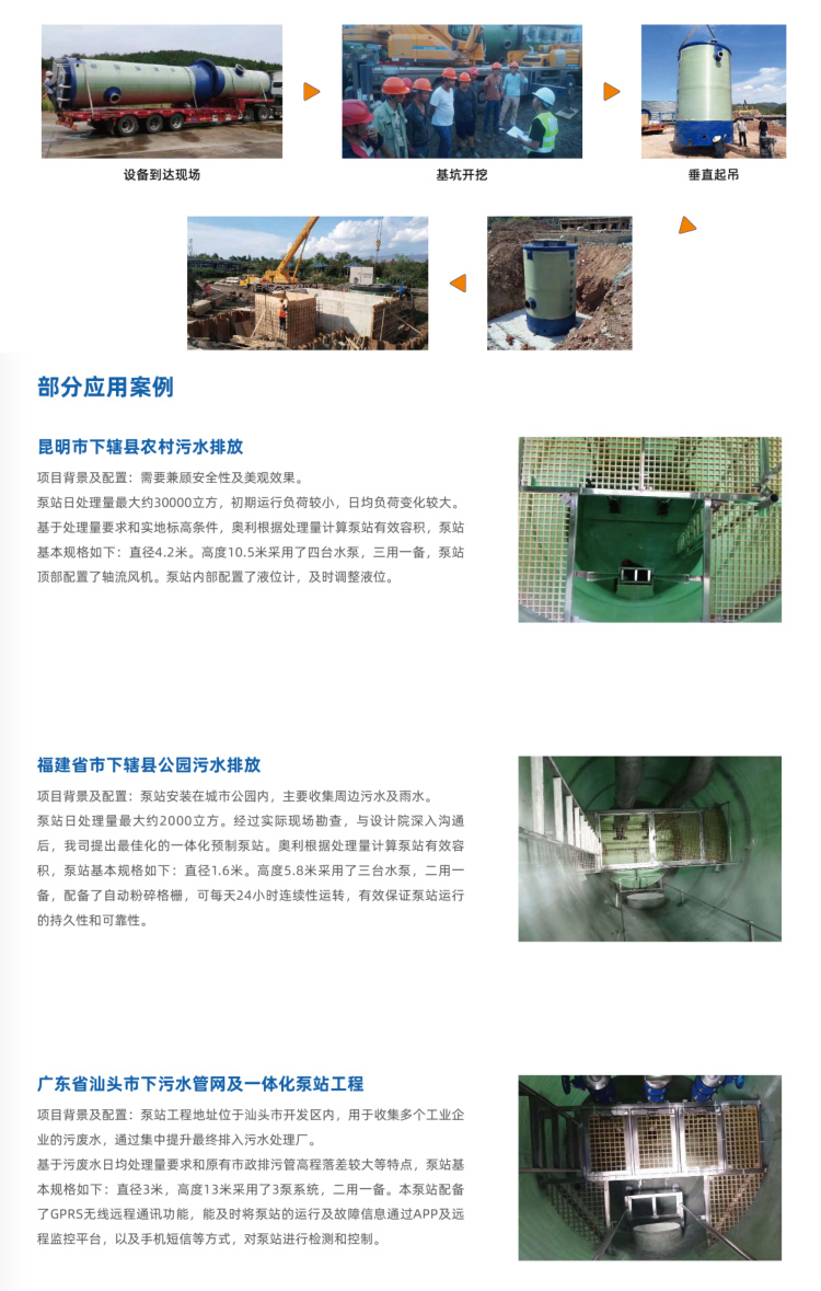 隨著國(guó)內(nèi)城鎮(zhèn)化進(jìn)程的加快,污水排放已經(jīng)影響我們的生活。奧利預(yù)制泵站的出現(xiàn),針對(duì)污水的處理進(jìn)行了有利的發(fā)揮,提高了操作性與便利性。原泵房基礎(chǔ)設(shè)施傳統(tǒng)混凝土結(jié)構(gòu)日益暴露出其難以克服的缺點(diǎn),現(xiàn)狀無(wú)法滿足對(duì)于污水、雨水、工業(yè)廢水等自動(dòng)化收集和提升的需求。一體化預(yù)制泵站應(yīng)運(yùn)而生,集成筒體系統(tǒng)、水泵系統(tǒng)、格柵系統(tǒng)、閥門(mén)系統(tǒng)、管道系統(tǒng)、液位控制系統(tǒng)等標(biāo)準(zhǔn)部件,筒體采用高強(qiáng)度纖維玻璃鋼(GRP)/高密度聚乙烯/聚丙烯材質(zhì),完全封閉設(shè)計(jì),可整體移動(dòng),整體掩埋于地下。