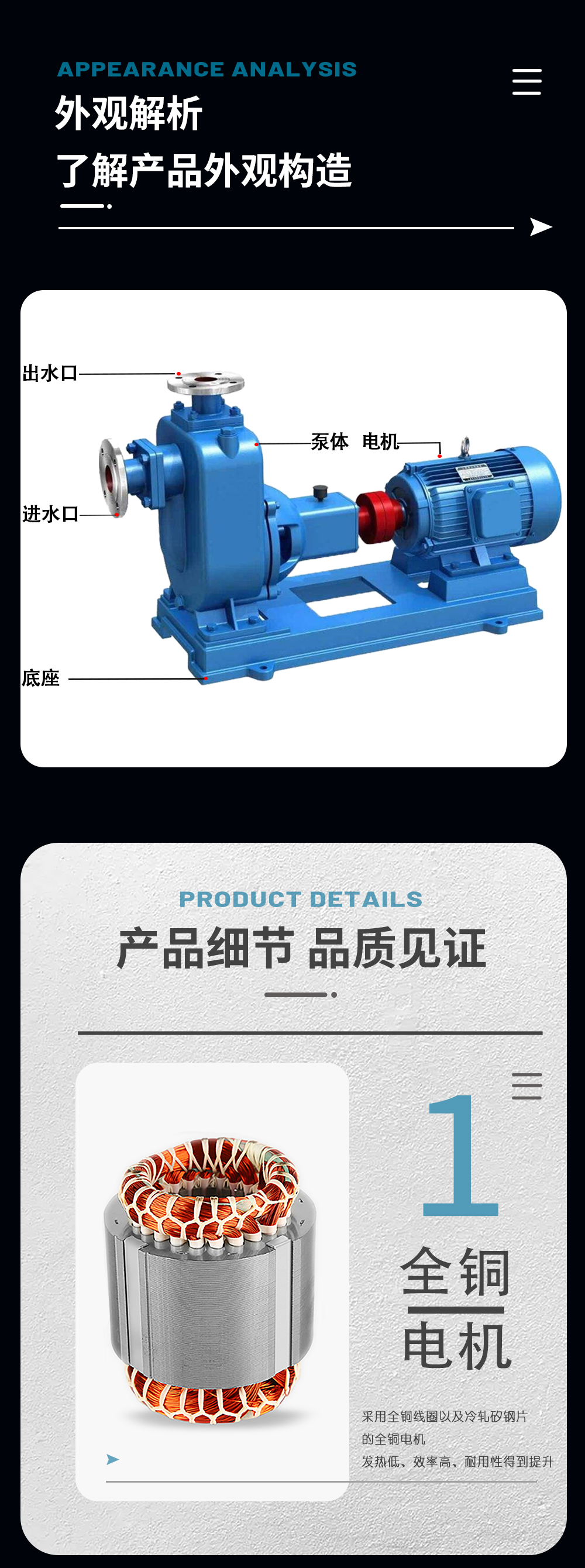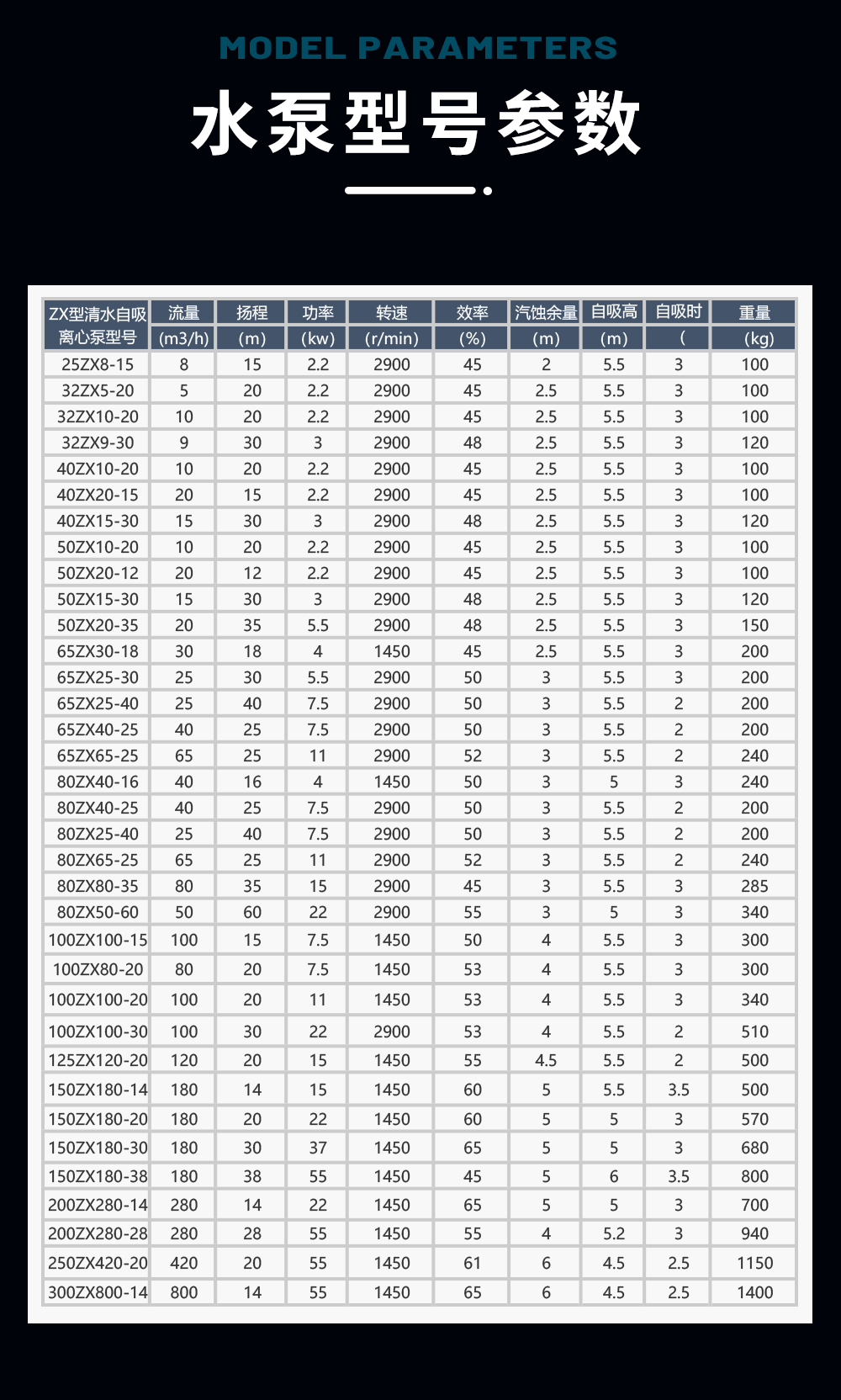 ZX系列型泵是臥式自吸泵。該型式泵 與其它型式的自吸離心泵比較,因?yàn)楸帽旧頉] 有逆止閥,結(jié)構(gòu)最為簡(jiǎn)單;工作最為可靠;無(wú) 故障工作時(shí)間長(zhǎng),維護(hù)、使用方便、體積小、 重量輕、效率高、在設(shè)計(jì)上做了特別的考慮與 相同口徑的泵比較,排量大、性能高。在工農(nóng)業(yè)生產(chǎn)、搶險(xiǎn)救助,如排澇、救火中作為應(yīng)急泵使用效能更為突出。 廣泛適用石 油、化工、冶金、機(jī)械、化纖、食品、能源、交通等工業(yè)部門城市給水、亦可用于農(nóng)業(yè)排灌、 噴灌。供輸送清水或粘度小于5°E,溫度低于80℃物理及化學(xué)性質(zhì)類似清水的其它液體。